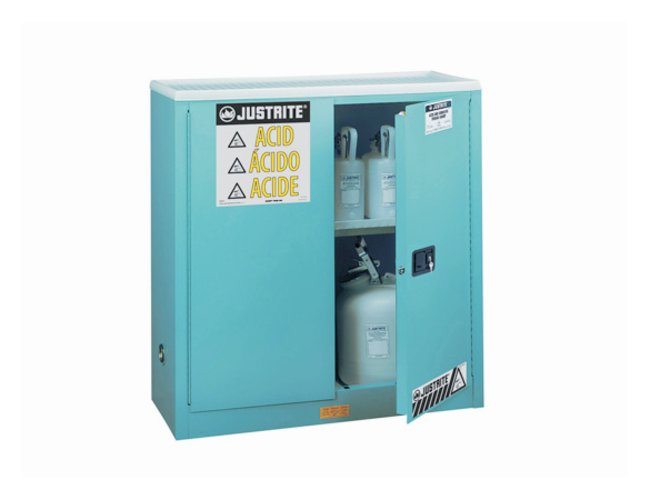 Protect your work environment with a Justrite Sure-Grip EX Cabinet. Made from 18-gauge steel construction with heat-fused powder coating, this cabinet is perfect for storing corrosives and acids.