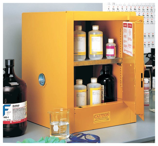 For storing small quantities of flammable liquids at work station or adding to existing storage capacities.