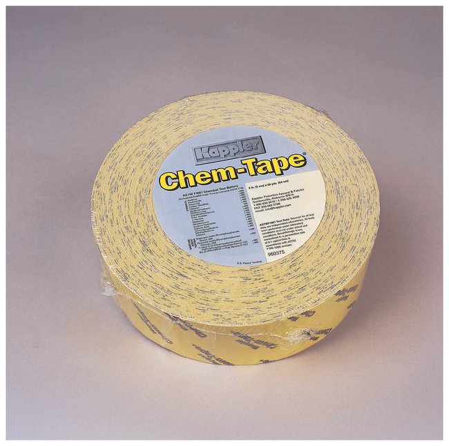 Seals gaps in protective apparel at sleeve, ankle, hood and storm flapYellow adhesive tape attaches pieces of protective apparel ensemble, preventing gross liquid intrusion at interface points.Provides a durable reinforcement, but tears easily for quick applicationFor single use onlyOrder InfoRoll measures 2 in. × 60 yd. (5cm × 55m).ComplianceMeets ASTM™ F739 (using ASTM F1001 test battery) standards; permeation tested in accordance with MIL-STD 282 (using various chemical warfare agents).