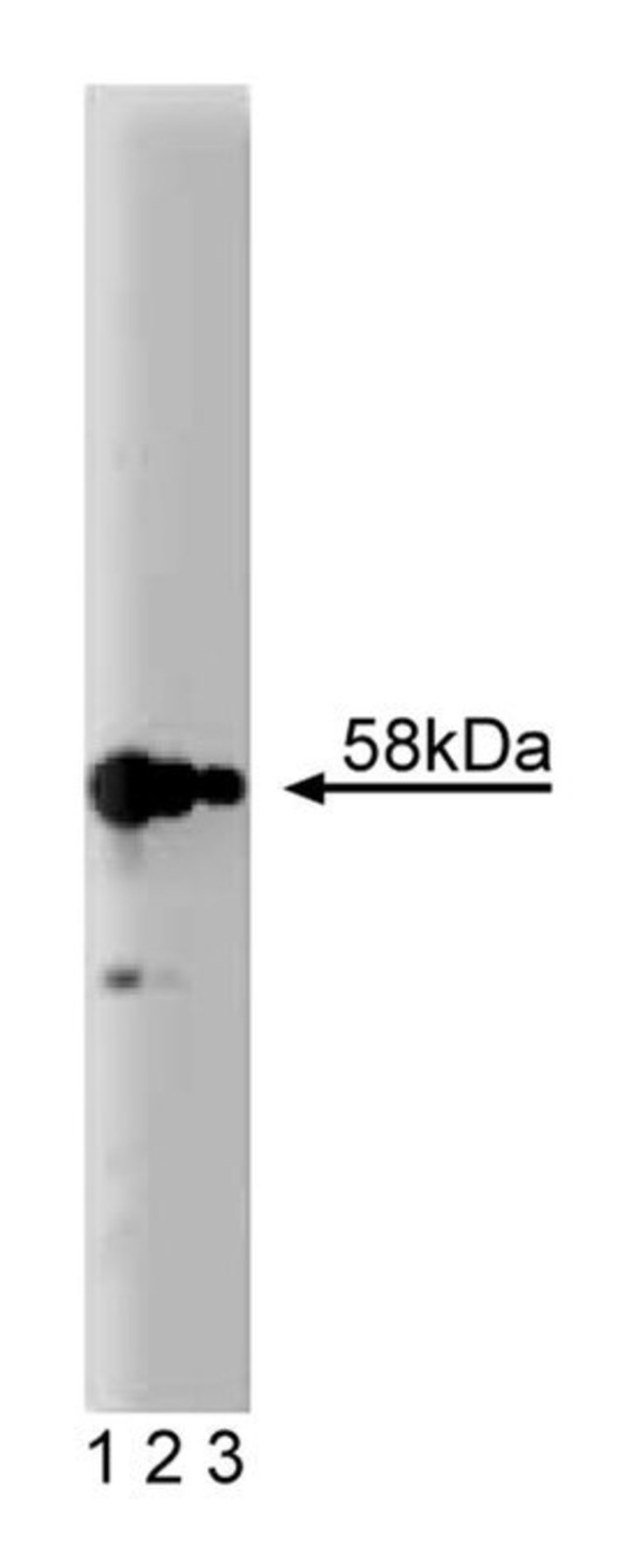 The two step process of importing proteins into the nucleus involves the binding and interaction of several cytosolic and nuclear pore proteins. Proteins to be translocated into the nucleus contain a nuclear localization sequence (NLS) which is recognized and bound by carrier proteins in the cytosol. Heterodimers belonging to a highly conserved family of proteins called karyopherins are required for successful nuclear localization of cytosolic proteins. The α-subunits appear to function in the binding of NLS (both simple and bitartite NLS motifs), but both α- and β-subunits are required for successful docking to the nuclear envelope. ATP is required for complete translocation of proteins into the nucleus. Karyopherin α2 was first identified as Rch-1, an NLS receptor which interacts with the RAG-1 recombination-activating protein in developing B and T cells. Rch-1 has been reported to be 44% identical to karyopherin α1 (hSRP-1 /NPI-1).Immunofluorescence, Immunohistochemistry, Immunoprecipitation, Western Blotting