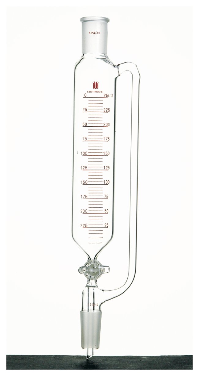 Addition Funnels with Pressure Equalizing Arm and Glass Stopcock, Cylindrical style addition funnel with pressure equalizing arm and glass stopcock, Each