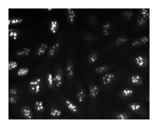 Cellular proliferation is a complex multi-faceted process, central to biological events ranging from embryonic development to wound healing. Although proliferation is tightly controlled, dysregulation often results in tumorigenesis. The regulatory process involves the expression of many cell-cycle-associated proteins that are subject to cycle-dependent modification. Such protein expression may be monitored to assess the proliferative capacity of cells, especially tumorigenic cells.The Ki-67 antigen is a nuclear protein expressed exclusively in proliferating cells during all active parts of the cell cycle. However, it is absent in quiescent cells and during DNA repair. The distribution of Ki-67 changes during different stages of the cell cycle. During G1, it is localized to the perinuclear region, but is primarily found in the nuclear matrix in later phases. During mitosis, it associates with the condensed chromosomes. The nuclear localization of Ki-67 and strict association with the cell cycle indicate its importance in the regulation of cell division. Therefore, Ki-67 has become an important marker of proliferating cells, and may also be a marker for disitinct nuclear matrix compartments.Immunofluorescence, Western Blotting