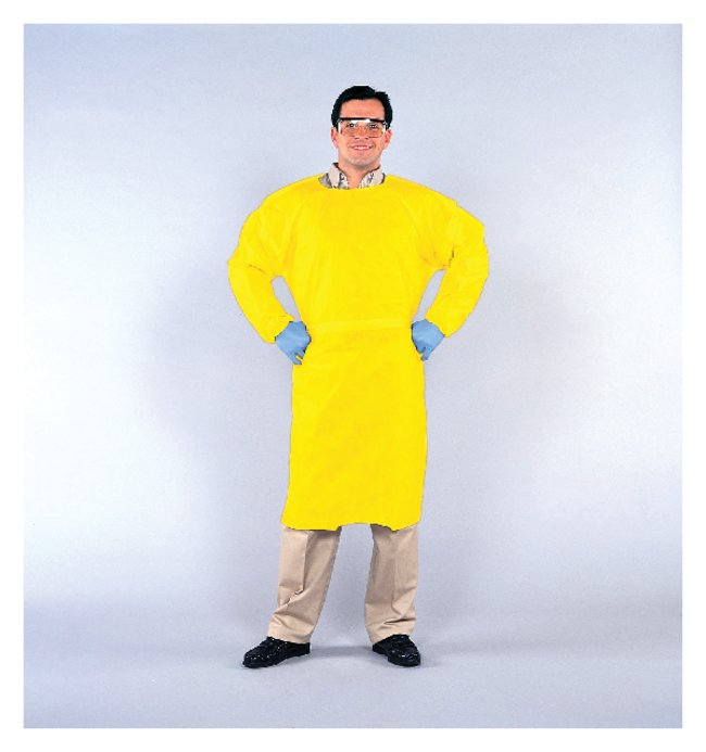 Resistant to many water-based liquids, greases and oils, and liquid chemical spraysElastic wrists Tie-front closure at waistBack openingYellow