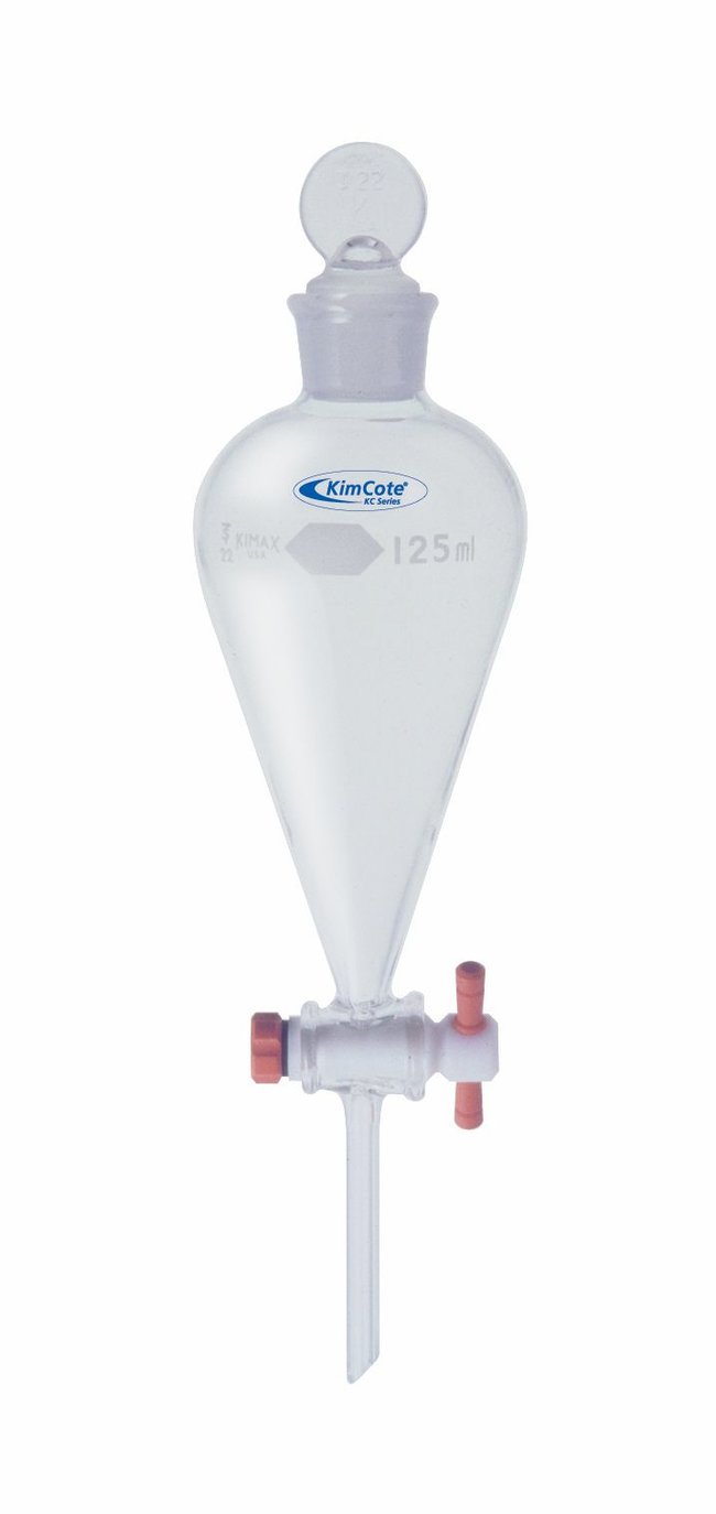 Kimble™ Kontes™ Squibb Pear-Shaped Separatory Funnels with standard taper Stopper and Autoclavable PTFE Stockcock Plug, Case of 1