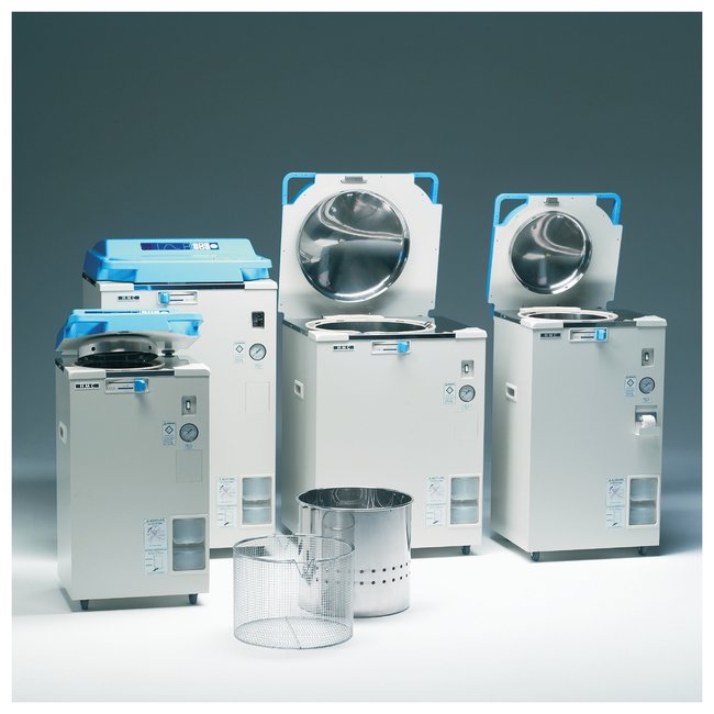 Use steam sterilizationSix sizes from 25 to 110 litersLow height, easy-to-loadPortable — require no plumbing to operate but can be plumbedComplete line of baskets, inserts and cans available separatelyHV Series (dependable, hard-working, economical)Many upgrades available depending on your needsCertificationsCE markedWarranty and ServicesTwo years on parts; One year on labor