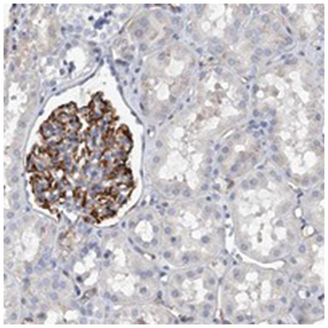 NEPH1 is a member of the nephrin-like protein family, which includes NEPH2 (MIM 607761) and NEPH3 (MIM 607762). The cytoplasmic domains of these proteins interact with the C terminus of podocin (NPHS2; MIM 604766), and the genes are expressed in kidney podocytes, cells involved in ensuring size- and charge-selective ultrafiltration (Sellin et al., 2003 [PubMed 12424224]).[supplied by OMIMSequence: VTLSIEPQTVQEGERVVFTCQATANPEILGYRWAKGGFLIEDAHESRYETNVDYSFFTEPVSCEVHNKVGSTNVSTLVNVHFAPRIVVDPKPTTTDIGSDVTLTCVWVGNPPLTLTWTKKDSNMVLSNSNQLLLKSVTQADA