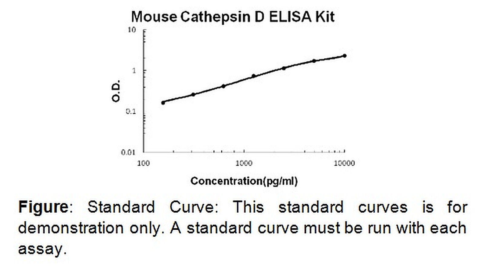 Cathepsin D (mouse) ELISA Kit 100 assays^ Cathepsin D (mouse) ELISA Kit, Sensitive, Colorimetric Assay, Detection Method Absorbance (450 nm), Species: mouse, Applications Quantitative protein detection. Detection Range: 156-10, 000 pg/ml. Sensitivity: < 5 pg/ml, Size: 100 assay