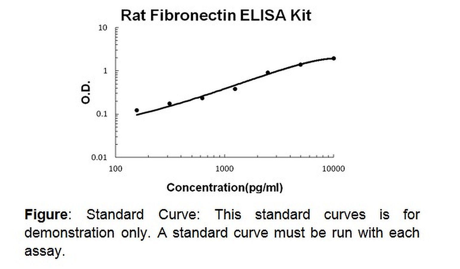 Fibronectin (rat) ELISA Kit 100 assays^ Fibronectin (rat) ELISA Kit, Sensitive, Colorimetric Assay, Detection Method Absorbance (450 nm), Species: Rat, Applications Quantitative protein detection. Detection Range: 156 pg/ml - 10, 000 pg/ml. Sensitivity: < 15 pg/ml, Size: 100 assay