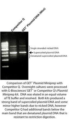 GET* PLASMID MINIPREP^ GET* Plasmid Miniprep. This method is based on alkaline lysis of bacteria and an enhanced DNA binding column to produce high yields of plasmid. 1-5 ml culture will produce up to 20ug/prep. Pack of 50 preps.