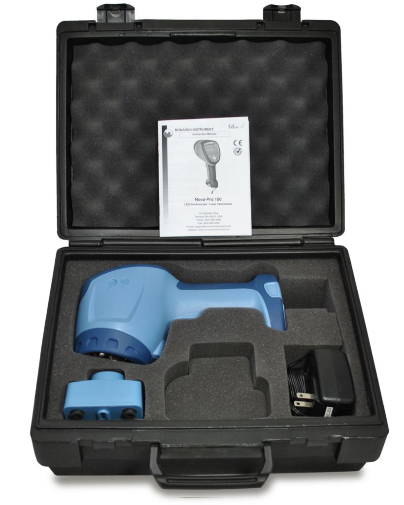 Nova-Pro 100 Kit NIST^ Nova-Pro 100 Kit NIST, Includes: standard Li-ion battery pack, battery charging station with interchangeable wall plug, operation manual and plastic latching carry case, NIST certificate, Display: 6 Digit Numeric/5 Digit Alphanumeric LCD, Tachometer Mode: 0-999,999RPM