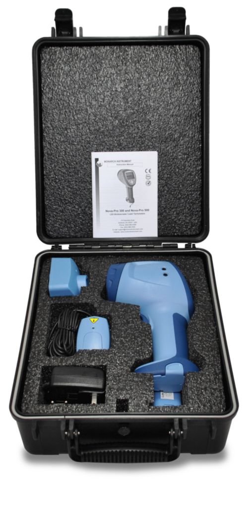 Nova-Pro 500 Kit^ Nova-Pro 500 Stroboscope kit, includes: integral laser module with remote dock, (2) standard Li-ion battery packs, battery charging station with interchangeable wall plugs, NIST certificate and operation manual, deluxe water tight latching carry case, Tachometer Mode: 0-999,999RPM