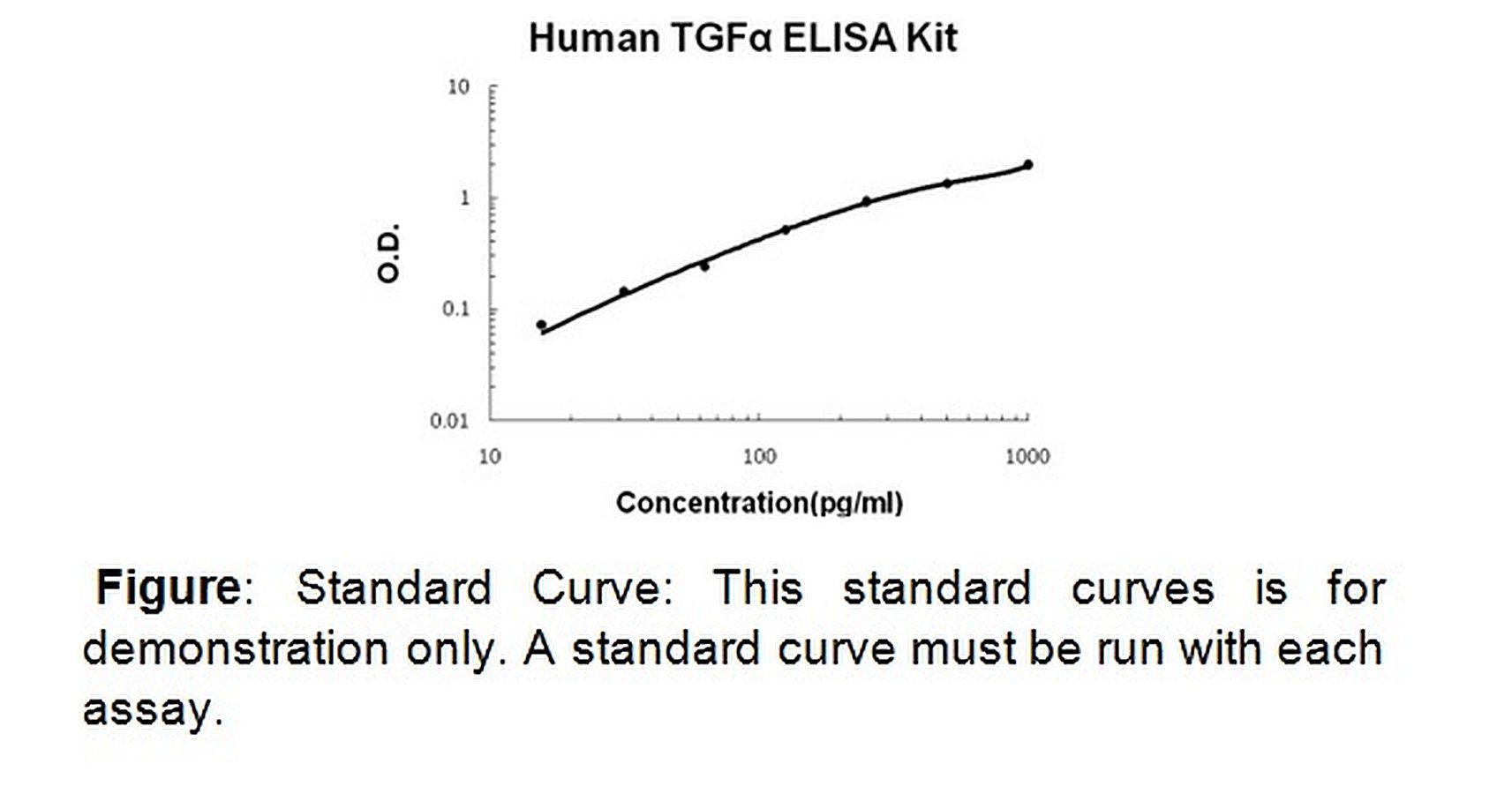 TGF-alpha (human) ELISA Kit 100 assays^ TGF-alpha (human) ELISA Kit, Sensitive, Colorimetric Assay, Detection: Absorbance (450 nm), Species: human, Applications Quantitative protein detection, establishing normal range. Detection Range: 15. 6-1000 pg/ml. Sensitivity: < 1 pg/ml, Size: 100 assay