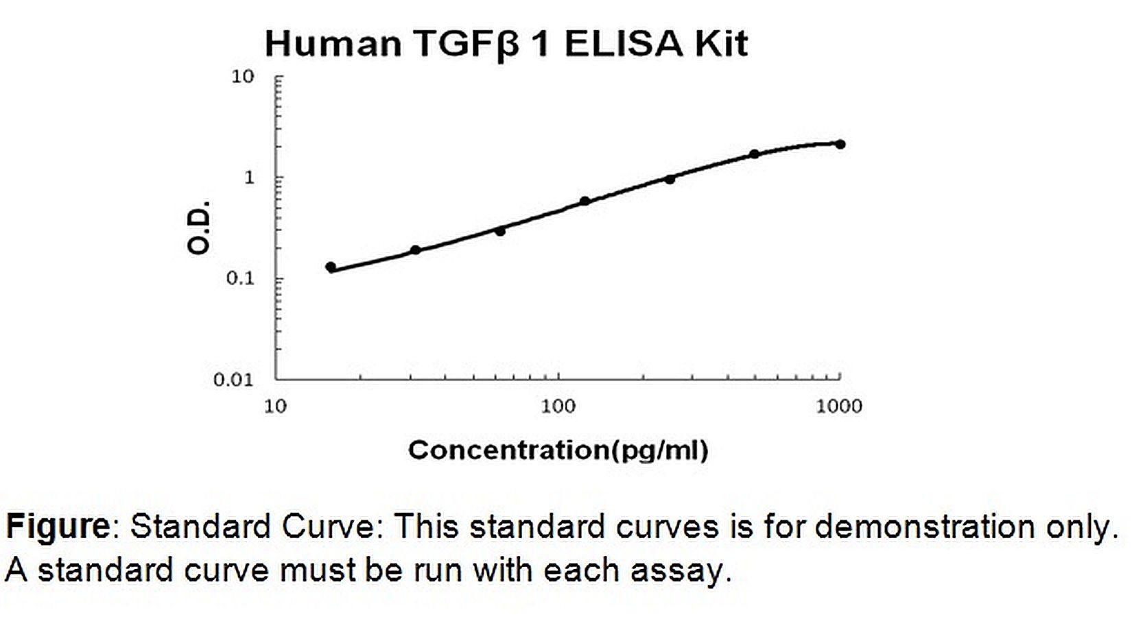 TGF-beta1 (human) ELISA Kit 100 assays^ TGF-beta1 (human) ELISA Kit, Sensitive, Colorimetric Assay, Detection Method Absorbance (450 nm), Species: human, Applications Quantitative protein detection. Detection Range: 15. 6-1000 pg/ml. Sensitivity: < 1 pg/ml, Size: 100 assay