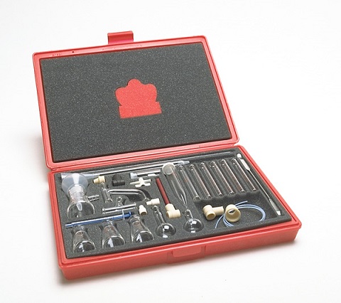They fit easily into lab bench drawers, These MICROFLEX® Kits feature patented chaste connectors and specially tooled glassware components, providing great versatility, Glassware is manufactured from 33 expansion, low extractable borosilicate glass conforming to USP Type I and ASTM E438, Type I, Class A requirements
