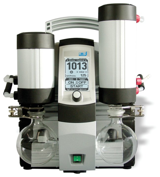 Oil-free vacuum system supplies clean, reliable vacuum source without hassles of handling pump oils or tainted aspiration water. Four operating modes make this a fast, versatile device for a wide range of pumping applications.Intuitive interface with touch controls and rotation knobMenus include unit of measurement, language, mode, parametersGraphic display shows process variablesOperating ModesEvacuation (Regulated pumping)—Controlled emptying of a chamberPressure Control—system controls pressure to set value (constant pressure)Automatic—system automatically finds vapor pressure of sample and adjusts process pressure accordinglyIndividual Pressure Function—system controls process according to user-defined pressure curve; REPEAT function allows successive repetitions of programmed curveManual process control can be selected at any time during an active processPC Control:Windows™-based software (included) enables control via external PCSoftware supports display of pressure curves as a chartSetpoints can be savedData can be exported to spreadsheets or text filesUSB interfaceOther Features:Intelligent control system monitors actual pressure; system compensates for fluctuationsLow-speed startPatented diaphragm stabilization system ensures high speeds at low pressures for faster processing timesSystem stops when setpoint pressure is achieved; cycles ON/OFF intermittently to stabilize pressureChemical-resistant gas carrying partsQuiet operationThis product(s) resides on a Fisher Scientific GSA or VA contract. If you are viewing this page as a nonregistered user, the price(s) displayed is List Price. To view your GSA or VA contract pricing, log in using your account number, or become a registered user by contacting one of our Customer Service teams. You can also view your contract price by searching for this item(s) on GSA Advantage. To place an order, contact Fisher Scientific Customer Service.