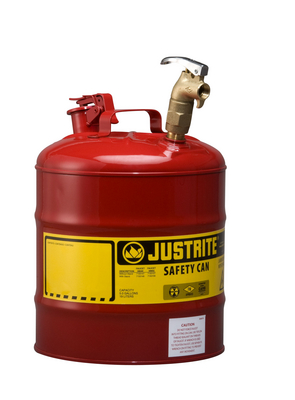 Safety Can Dispensing^ Type I Dispensing Safety Can, Top 08902 brass faucet, Stainless steel flame arrester and self-close lid, Colour: Red, Material: Steel, Fill/Pour Hole: 1.58in, Capacity: 5 gal, Dimension Exterior: 15.875in H x 11.75in Outer Diameter, Approval: FM