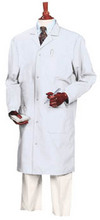 Unisex Microstat ESD Lab Coat^ Made of polyester/cotton/1% carbon-suffused nylon grid material. 104cm long with pocket access slits. Features a snap front, lapel collar, three patch pockets, and adjustable snaps at wrists. Color-coded hang loop denotes size. Chest size: 50-52. Color: white.