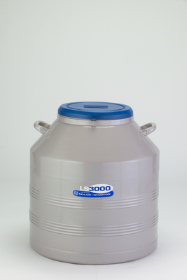 Laboratory Storage System, LS3000^ Aluminum refrigerator designed for 3000 2mL vials in box type racks. Static holding time is 106 days. Evaporation rate is 0.76L per day. Liquid N2 capacity is 81L. Neck diameter is 216mm. Overall height is 482mm. Overall diameter is 731mm.
