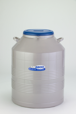 Laboratory Storage System, LS4800^ Aluminum refrigerator designed for 4800 2mL vials in box type racks. Static holding time is 200 days. Evaporation rate is 0.65L per day. Liquid N2 capacity is 130L. Neck diameter is 216mm. Overall height is 892mm. Overall diameter is 683mm.