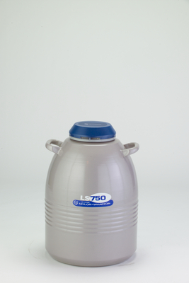 Laboratory Storage System, LS750^ Aluminum refrigerator designed for 750 2mL vials in box type racks. Static holding time is 130 days. Evaporation rate is 0.27L per day. Liquid N2 capacity is 35L. Neck diameter is 119mm. Overall height is 482mm. Overall diameter is 681mm.