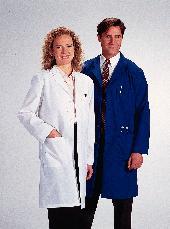 Unisex Polyester/Cotton Lab Coat^ Tailored to fit both men and women. Full-length (102cm) with buttons. Features three large, reinforced pockets and side slits in seams for access to pants. Made of 65% polyester and 35% cotton poplin fabric with stain-release finish. Size: Small. Color: White.