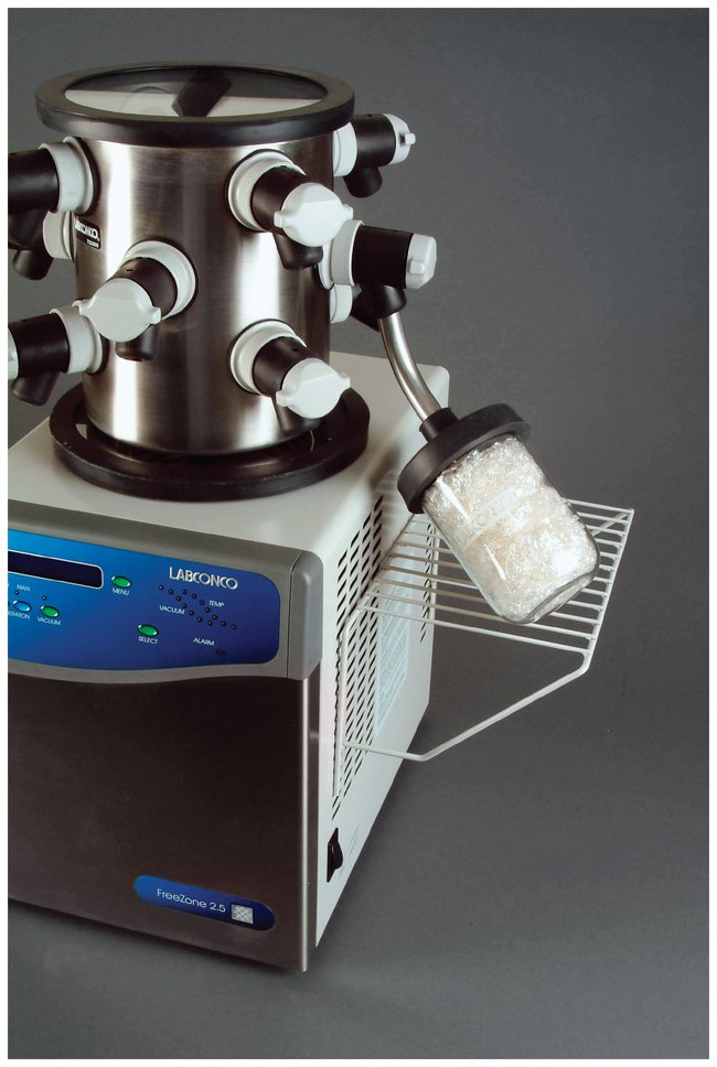 Attach to FreeZone™ Freeze Dryers to provide support for glassware on drying chambers or manifolds.Support Shelves attach easily without tools to the sides of the FreeZone 1, 2.5 or 4.5 Liter Freeze Dry System or left-hand side of the FreeZone Triad System cabinet to provide support for large flasks attached to the drying chamber or manifold. Multiple rows of perforations on the sides of the FreeZone cabinet allow for height adjustment of the shelves to support various sizes of flasks. One pair. Glacier white epoxy-coated steel wire.