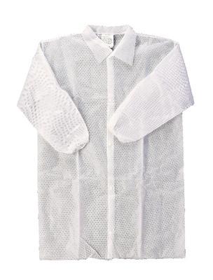 Here are the corrected product descriptions: VWR Basic Protection SPP Lab Coats are manufactured from a strong, lightweight, and breathable spunbonded polypropylene (SPP) fabric. The garments feature inset sleeves, snap front, and tapered collar. They are available with elastic cuffs or knit cuffs and have serged seams. Lab coats are rigorously tested and manufactured in an ISO Certified facility under stringent process controls to ensure that each garment meets exacting quality standards and performs to specification. Lot controlled and validated through independent lab testing. These knee-length, general-purpose garments may be used to protect against dirt, grime, and certain dry particulates in nonhazardous environments. They are ideal for less critical areas or pre-gowning entry rooms. Available with the following features: * Economical, disposable first-line barrier * Maximum breathability * Low linting * Various cuff styles: elastic cuffs, knit cuffs, no pockets * Available in various sizes: S, M, L, XL, 4XL, 5XL * Colors: White, Blue