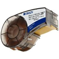 Self-Laminating labels for the BMP21* Mobile Printer^ 1.25W x 14ft. Black ribbon on white/translucent tape. Matte Vinyl. Self-Laminating. Abrasion and smudge resistant. Water and oil resistant. Self-Extinguishing.