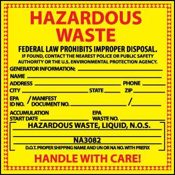 Labels, Hazardous Waste (For Liquids), 6X6, Ps Vinyl, 25/Pk^