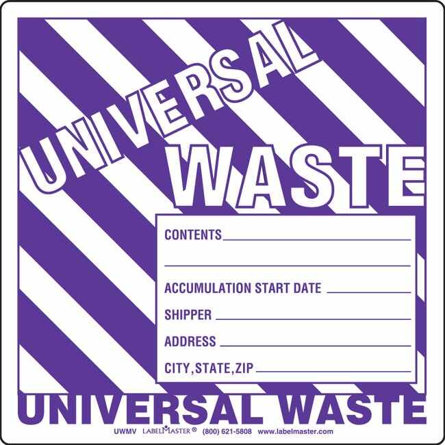Universal Waste Label w/Generator Info, Stock PVC-Free Film, Pack of 100