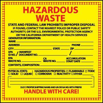 LABELS HAZARDOUS WASTE CALIFOR. ,Each