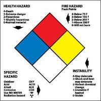 Write-On Hazard Labels^ Paper write-on NFPA hazard labels identify the degree of health hazard, flammability, reactivity and specific hazards of chemicals. Colored squares can be numbered to the NFPA rating system of 0 to 4. White square for specific hazard warning. 51x51mm.