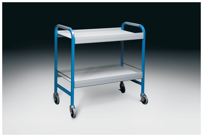 Fisherbrand Laboratory Carts offer versatile choices for holding or transporting a variety of lab supplies, equipment and containers.4 in. diameter casters, 2 with toe locksReady-to-roll, full factory assemblyErgonomic, extruded rubber handle gripsDurable Fisherbrand blue, powder-coated 18 gauge welded tubular steel frameID tag5 year warrantySupports loads up to 400 lbs.Stainless Steel Cart features two stainless steel pains that are 2 in. deep on three sides with one open side for easy transfer of equipment from countertop to cart.2-Basket Glassware Cart, used to carry glassware and small instruments in two vinyl-coated wire baskets, includes removable plastoc drip pan to catch spills. Each basket measures 32 x 18 x 4 in. h.4-Basket Glassware Cart, used to carry glassware and small instruments in four vinyl-coated wire baskets, includes removable plastic drip pan to catch spills. Each basket measures 16 x 18 x 4 in. h.Pan Cart, used for transport of wet or soiled labware, features 2 in. deep powder-coated steel, removable watertight pans lined with gray rubber mats to prevent shifting. Portable Table features two open shelves that provide easy transfer of equipment from countertop to cart. Chemical Cart features two open shelves with rigid PVC extrusions on two sides to prevent containers from sliding.Warranty and Services5-year