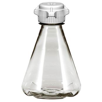 Additional Info Foxx Life Sciences Erlenmeyer Shaker Flasks are molded from virgin, optically clear, non-leaching polycarbonate resin that complies with stringent FDA and USP requirements. Our flasks can be used for cell cultures, microbial cultures, media preparation and storage.Flasks are available in 1liter and 2 liter sizes with flat bases for general laboratory use, and baffled bases for increased oxygenation add mixing. They have molded in graduation marks and additional 20% overhead space. All Flasks and VersaCaps™ are autoclavable at 15 PSI and 121°C for 20 minutes.Our flasks are compatible with all 50 mm VersaCaps™ and adapter inserts, enabling easy customization of top connections. Vented VersaCaps™ with 0.2 μm hydrophobic membrane are available separately as an accessory.Erlenmeyer Flask