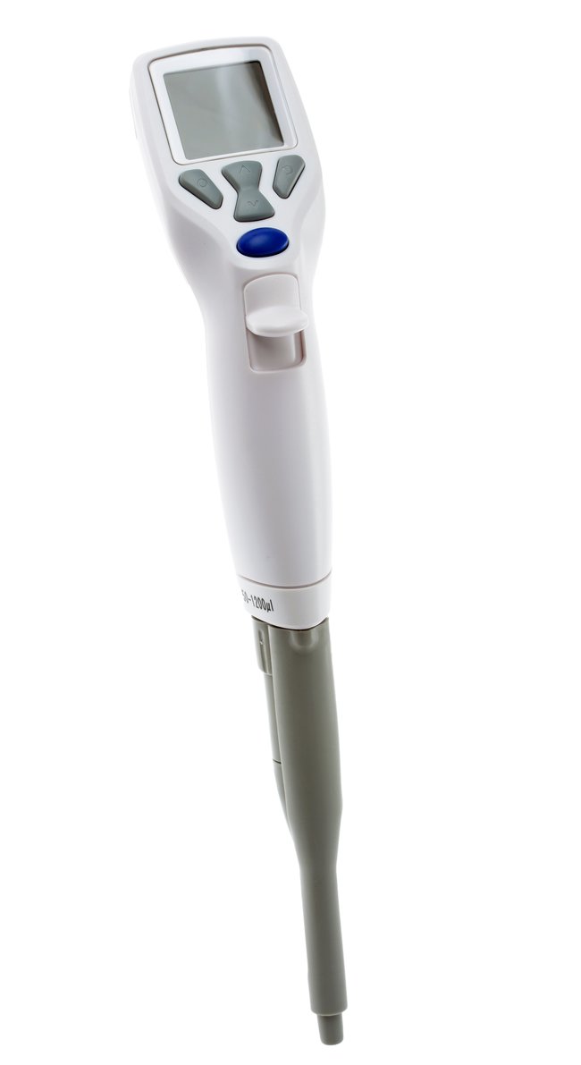 Electronic pipette. Volume Range 50 to 1000uL. Multi-mode operation, variable working speeds, simple volume selection. Large liquid crystal display, single fire button and integral tip ejector. Rechargable. Boxed.