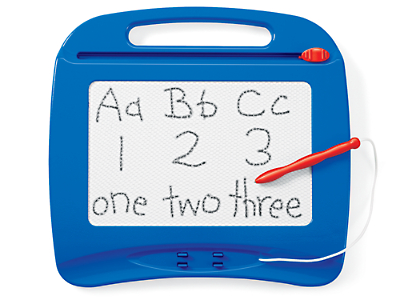 With our irresistible Magic Board, children will want to practice their printing skills again & again! The permanently attached magnetic pen makes writing fun & simple…and the easy-to-use eraser bar lets kids clear the board in seconds—and start writing again! Sturdy plastic; 10" x 10 3⁄4".