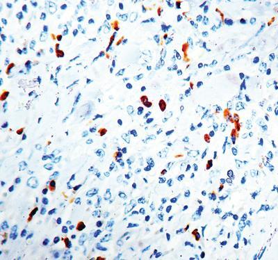 Lambda Light Chain^ Clone number N10/2, This antibody does not show any cross-reactivity with kappa light chain. It stains B cell follicles in human lymphoid tissues. The mantle zone shows a mosaic pattern of labeling while the germinal centers show a coarse meshwork pattern of staining. .