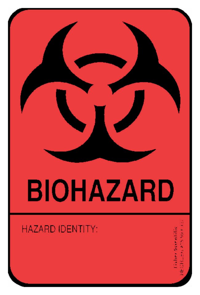 Large Blank Writable “Biohazard Identity” Label, Bright red fluorescent labels display the universal biohazard symbol for easy identification, Each