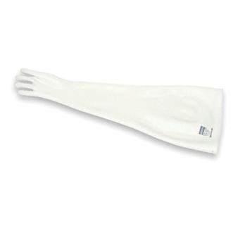 Outstanding abrasion and chemical with radiation attenuation.Features and Benefits0.1 mm lead equivalency for attenuation of soft gamma radiationHypalon provides superior resistance to ozone and oxidizing chemicals such as alcohols, alkalis and acidsHighly resistant to the effects of UV radiation in both artificial light and sunlightVery high abrasion resistance provides long glove service lifeWhite Hypalon surface will not hide contamination and is easily cleanedSolvent based, multi-dip manufacturing process provides multiple layers of polymer (like a glove within a glove) which results in a glove of superior qualityGood tensile strength provides resistance to accidental tearsDifferent colored lead-loaded (orange) and Hypalon layers provide a visual indication of glove damage or excessive wearAmbidextrous and hand specific styles availablePort sizes of 5 ", 7 " and 8 "ApplicationsGlovebox operations in the nuclear and defense industrie