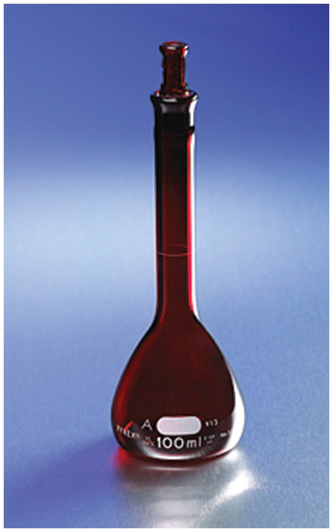 Serialized and Certified Class A Low Actinic Volumetric Flask with Glass Standard Taper Stopper, Case of 1