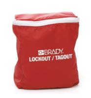 Large Lockout Pouch^ 8 H x 7 W x 3 D. Heavy Duty Nylon. White on Red.