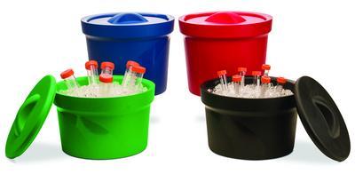 Ice Bucket w/ lid, Magic Touch* 2, blue, 2.5L^ high quality, expanded urethane, lightweight, chemical-resistant, high insulation, snug fitting lid, built-in pour spout, fill line indicator,raised top edge, easy transport,non-slip finish, dimensions: 10.56D x 7.06inH w/lid