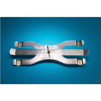 This sinc plated stamped steel burette clamp has a steel thumbscrew and can be used with rods up to 3/4 " in diameter. The distance between the two burettes is 7.25 "