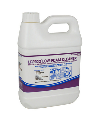 LF2100* Concentrated Liquid Low-Foam Cleaner^ 1L bottle. For industrial and laboratory machine-based washing systems. Removes wide range of soils from glass, stainless steel, ceramics, plastics, gemstones, and heavy-duty fabrics. No CFCs, ODCs, phosphates, borates, halogens, silicates, or phenols.