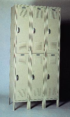 Double-Tier Locker System^ Single-frame format (two lockers). Each locker features one double-prong and three single-prong coat hooks for easy access, and a door handle with padlock attachment (padlock not included). Dimensions of unit: 91.4Hx30.5Wx30.5Dcm. Dove gray. Shipping weight: 24kg.