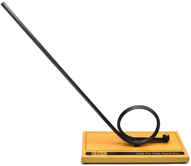 Loop the Loop with 2 Steel Balls includes everything needed to demonstrating centripetal acceleration and transformation of potential into kinetic energy Demonstrates centripetal acceleration and the transformation of potential energy into kinetic energy Features a looped track that can be fitted to a sturdy wooden base (included) Rubber stoppers underneath of the base prevent the apparatus from sliding or moving while in use