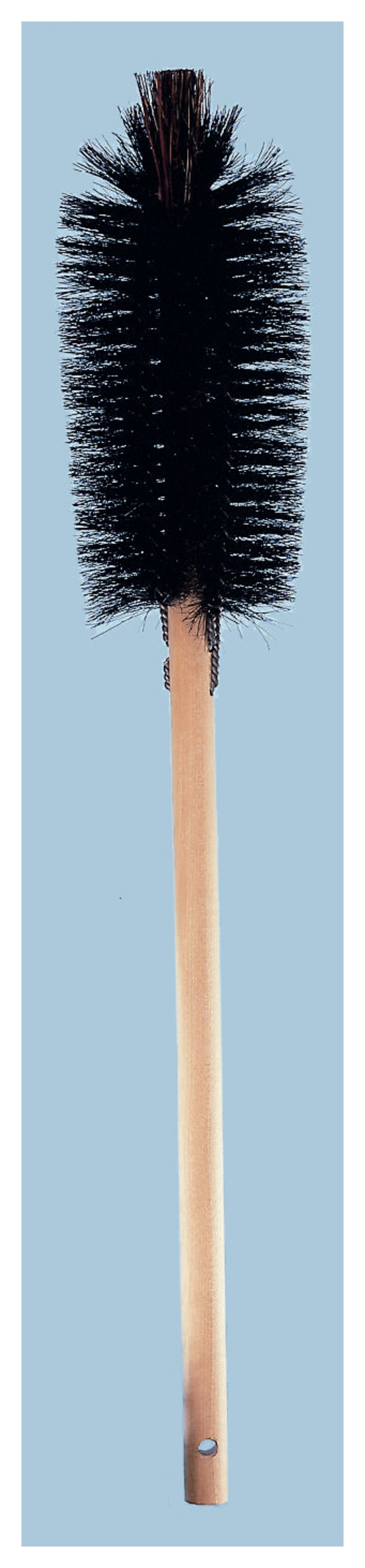Brush with a wood handle for cleaning beakersTwo rows of bristles provide slightly oval shapeEnd tuft for cleaning cornersWooden handle