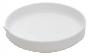 Low form evaporating dishes with pouring spout are manufactured from pure PTFE with heavy wall. Inert and useable to 260ºC. Smooth internal finish.