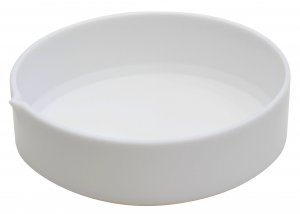 Low form evaporating dishes with pouring spout are manufactured from pure PTFE with heavy wall. Inert and useable to 260ºC. Smooth internal finish.
