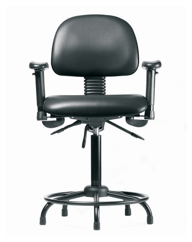 Fisherbrand™ Vinyl Chairs with Round Tube Base are height adjustable for 31 in. work surfaces and feature ergonomic adjustments, adjustable arms, fixed foot ring, and stationary glides. Antibacterial/Antifungal Grade B vinyl in a variety of colors will suit any work space.